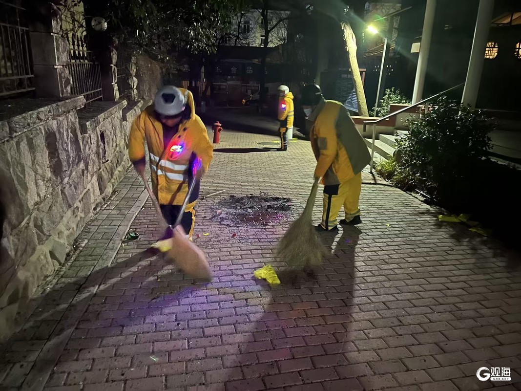 清晨六点,天未全亮,李阳身着厚重的橙色作业服,带领班组队员准时到岗。他负责五四广场等区域,平日里便是保洁重点,春节客流激增、垃圾量翻倍,任务更为繁重。“大年初一大家出门游玩,干净的环境才让人舒心,咱们得把活儿干到位。”简单动员后,他率先手持扫帚走向责任区,弯腰、清扫、收集,动作娴熟利落。