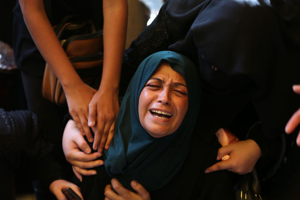 2024年8月13日,在加沙地带南部城市汗尤尼斯的纳赛尔医院,一名女子哀悼以军袭击遇难者。新华社发(哈立德·奥马尔摄)